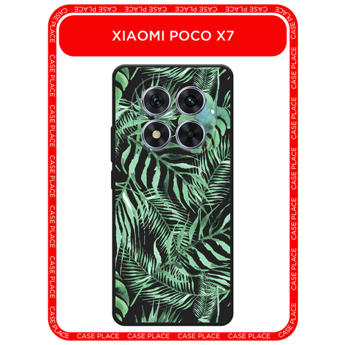 Черный матовый чехол на Poco X7/Xiaomi Redmi Note 14 Pro 5G / Поко X7 с принтом Папоротник фон 2