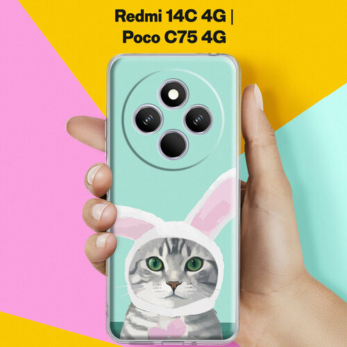 Силиконовый чехол на Xiaomi Redmi 14C 4G / Poco C75 4G с принтом "Кот С Ушами" с прозрачными бортиками