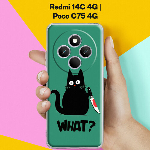 Силиконовый чехол на Xiaomi Redmi 14C 4G / Poco C75 4G с принтом "What?" с прозрачными бортиками