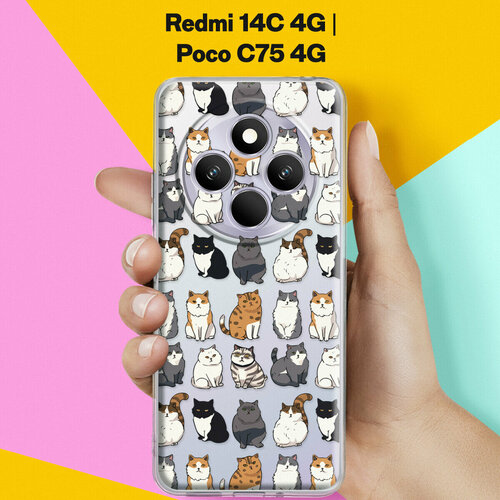 Силиконовый чехол на Xiaomi Redmi 14C 4G / Poco C75 4G с принтом "Коты" с прозрачными бортиками