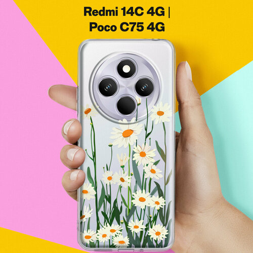 Силиконовый чехол на Xiaomi Redmi 14C 4G / Poco C75 4G с принтом "Ромашки длинные" с прозрачными бортиками
