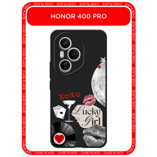 Черный матовый чехол на Honor 400 Pro / Хонор 400 Про с принтом xoxo lucky girl