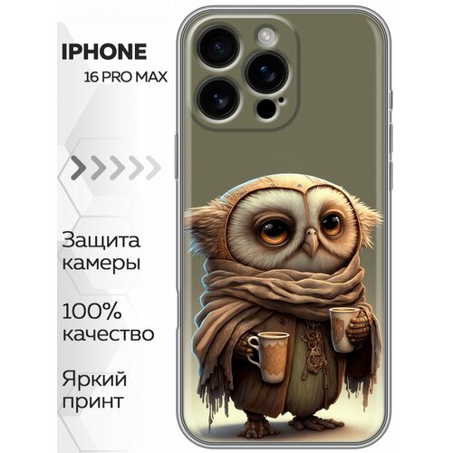 Чехол для Iphone 16 Pro Max с принтом Смешная сова (Айфон 16 Про Макс)