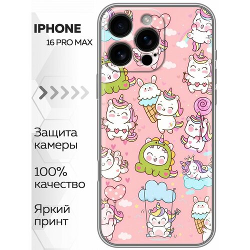 Чехол для Iphone 16 Pro Max с принтом Единороги (Айфон 16 Про Макс)