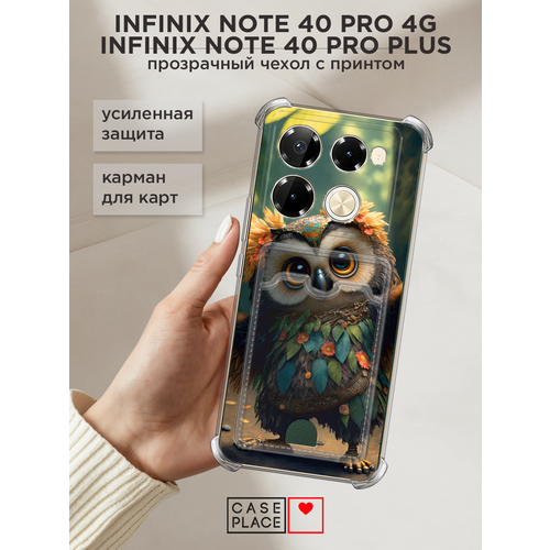 Чехол на Infinix Note 40 Pro 4G/40 Pro Plus (Инфиникс Нот 40 Про 4G/40 Про Плюс) с картой и принтом Тропическая сова