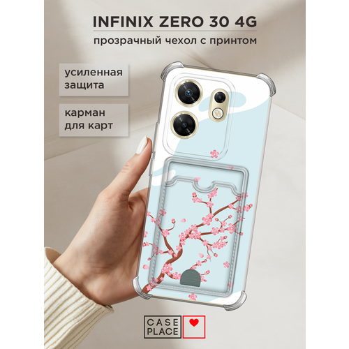 Чехол на Infinix Zero 30 4G (Инфиникс Зеро 30 4G) с картой и принтом Цветущая ветка сакуры
