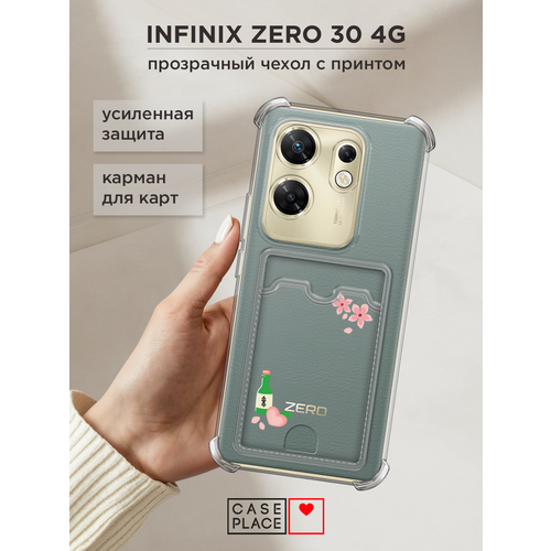 Чехол на Infinix Zero 30 4G (Инфиникс Зеро 30 4G) с картой и принтом Персиковый соджу