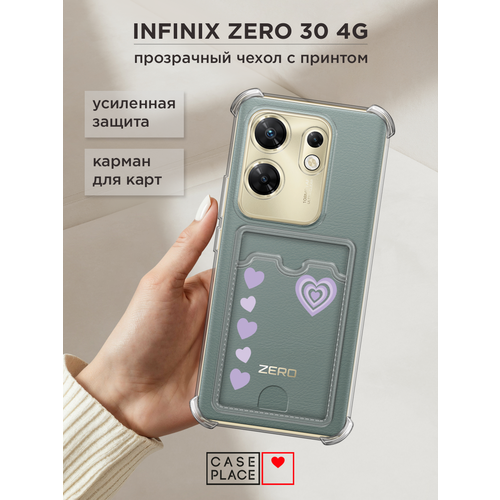 Чехол на Infinix Zero 30 4G (Инфиникс Зеро 30 4G) с картой и принтом Прозрачный с сердечками