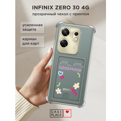 Чехол на Infinix Zero 30 4G (Инфиникс Зеро 30 4G) с картой и принтом Милые цветы и надпись GoodMood