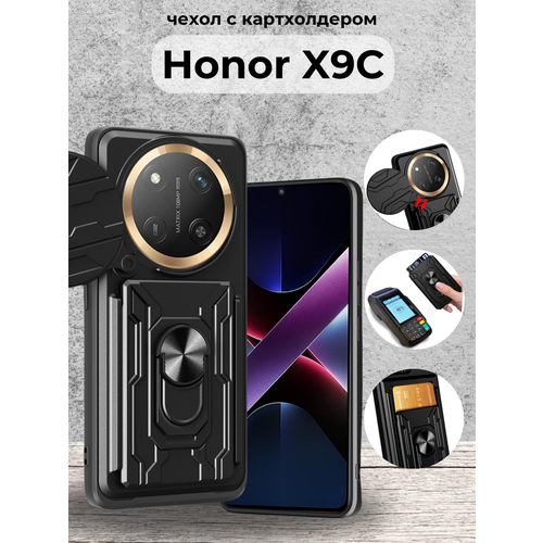 Чехол противоударный с картхолдером на Honor X9C / Хонор Х9С (Черный)
