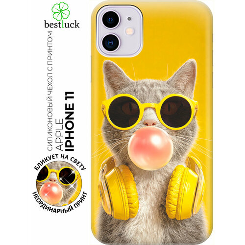 Силиконовый чехол на Apple iPhone 11 с принтом "Стильный котик‑меломан"
