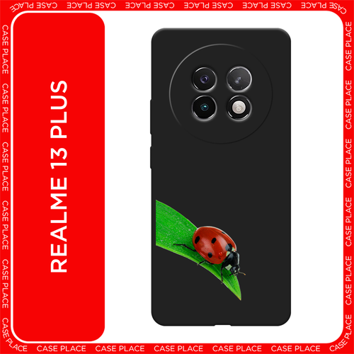 Черный матовый чехол на Realme 13+ / Реалми 13+ с принтом На счастье