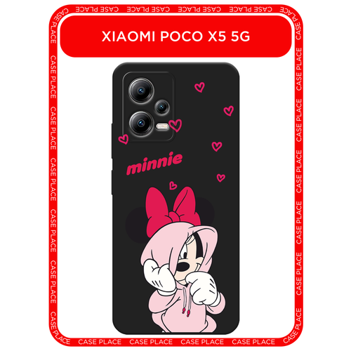 Черный матовый чехол на Xiaomi Poco X5 5G / Сяоми Поко X5 5G с принтом Минни в худи
