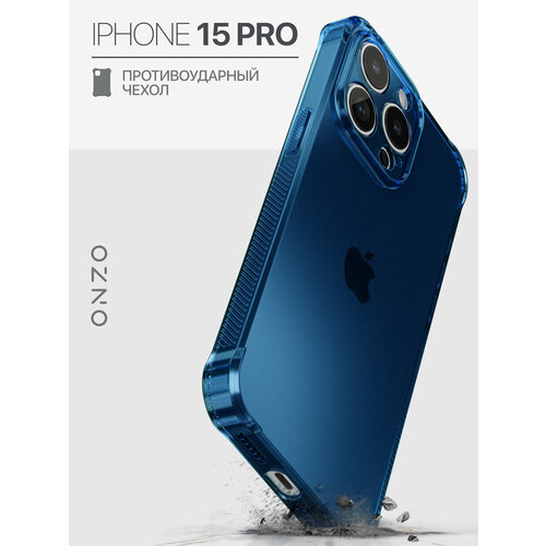 Противоударный бампер для iPhone 15 Pro / Чехол на Айфон 15 Про с рельефными гранями, синий прозрачный