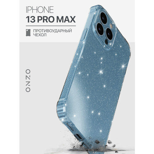 Противоударный чехол на iPhone 13 Pro Max / Айфон 13 Про Макс голубой с блестками