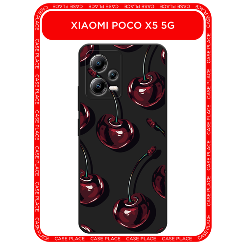 Черный матовый чехол на Xiaomi Poco X5 5G / Сяоми Поко X5 5G с принтом Сочные черешни