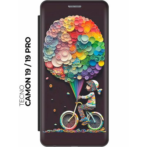Чехол-книжка на Tecno Camon 19 / 19 Pro / Техно Камон 19 / 19 Про с рисунком "Велосипедист и шарики" черный