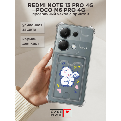 Чехол на Xiaomi Redmi Note 13 Pro 4G/POCO M6 Pro 4G (Сяоми Редми Нот 13 Про 4G/Поко М6 Про 4G) с картой и принтом Мишка с наушником в корейском стиле