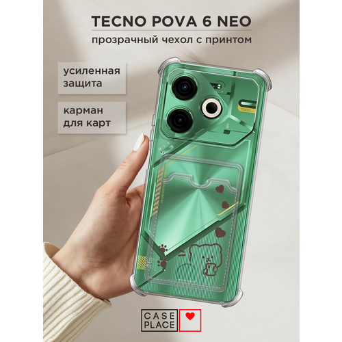 Чехол на Tecno Pova 6 Neo (Техно Пова 6 Нео) с картой и принтом Мишка и сердечки