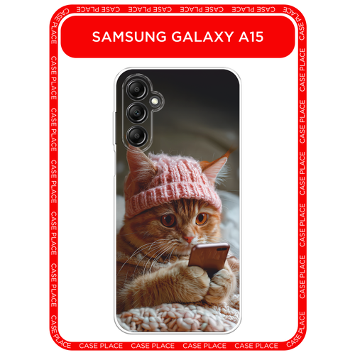 Чехол на Samsung Galaxy A15 / Самсунг А15 с принтом Рыжий котик с телефоном