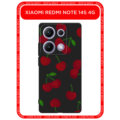 Черный матовый чехол на Xiaomi Redmi Note 14S 4G / Редми Нот 14S 4G с принтом Вишни паттерн 2