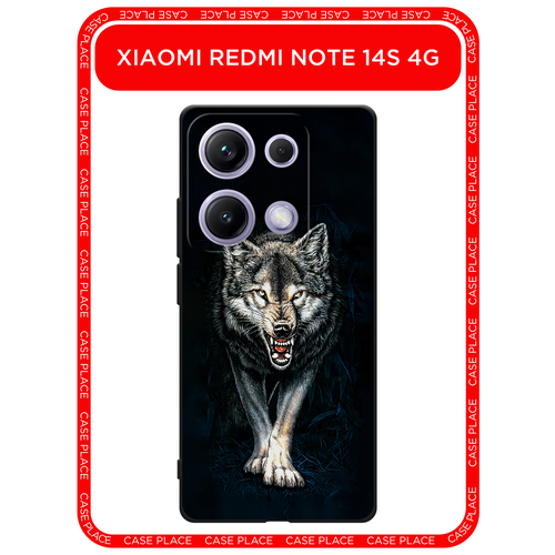 Черный матовый чехол на Xiaomi Redmi Note 14S 4G / Редми Нот 14S 4G с принтом Злобный волк из ночи