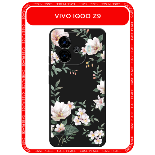 Черный матовый чехол на Vivo iQOO Z9/Z9 Turbo/Neo 10R / Виво iQOO Z9/Z9 Турбо с принтом Beautiful white flowers