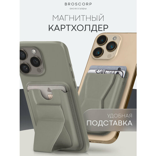 Магнитный картхолдер BROSCORP на Apple iPhone, кошелек, титановый серый