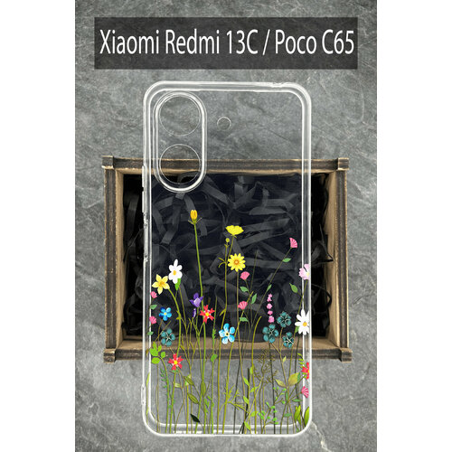 Силиконовый чехол на Xiaomi Redmi 13C с принтом Полевые цветы Редми 13С