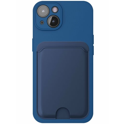 Чехол на Айфон 13 с карманом для карт Темно-синий матовый бампер iPhone 13 чехол с картхолдером синим