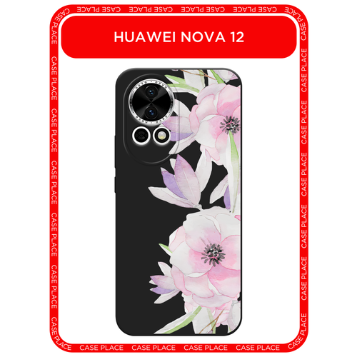 Черный матовый чехол на Huawei Nova 12/Nova13 / Хуавей Нова 12/Нова 13 с принтом Нежные анемоны
