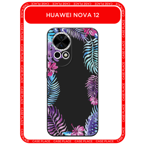Черный матовый чехол на Huawei Nova 12/Nova13 / Хуавей Нова 12/Нова 13 с принтом Пальмовые ветви арт
