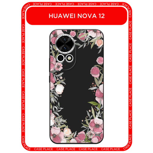 Черный матовый чехол на Huawei Nova 12/Nova13 / Хуавей Нова 12/Нова 13 с принтом Розовая цветочная рамка
