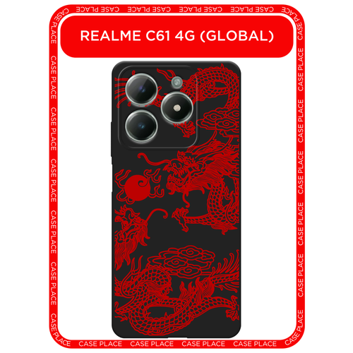 Черный матовый чехол на Realme C61 4G (Global) / Реалми C61 4G с принтом Красный азиатский дракон