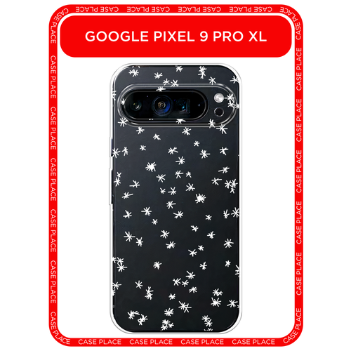 Чехол на Google Pixel 9 Pro XL / Гугл Пиксель 9 Про XL с принтом Снегопад рисунок белый, прозрачный