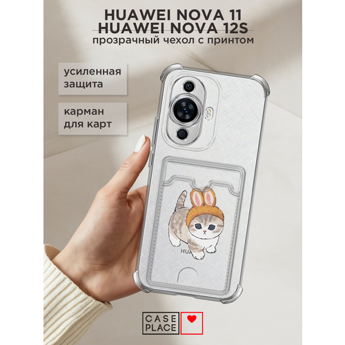 Чехол на Huawei NOVA 11/12S (Хуавей Нова 11/12S) с картой и принтом Котик с ушками зайца