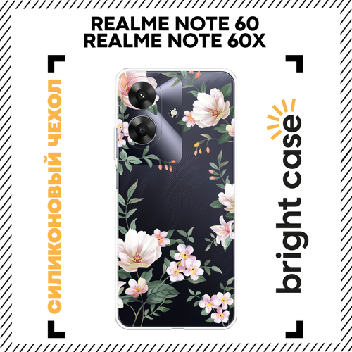 Чехол на Realme Note 60 / Реалми Нот 60 с принтом С цветами белыми, прозрачный