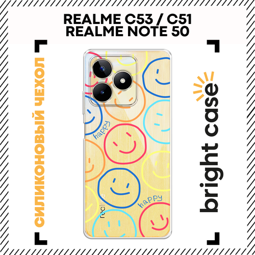 Чехол на Realme C53/C51/Note 50 / Реалми С53/С51/Нот 50 с принтом Смайлы, прозрачный
