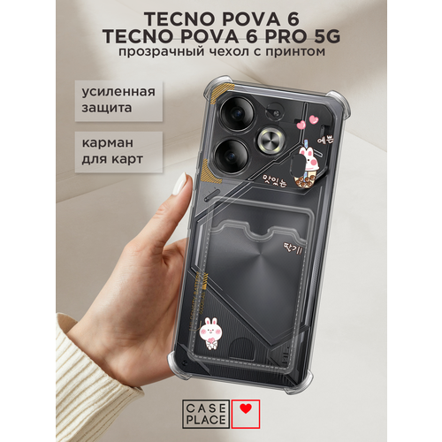 Чехол на Tecno Pova 6/6 Pro 5G (Текно Пова 6/6 Про) с картой и принтом Bunny bubble tea