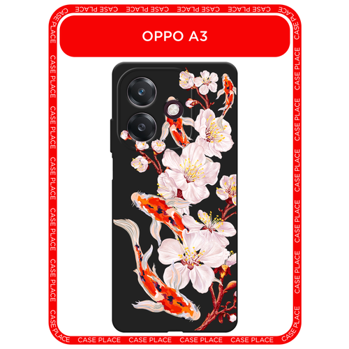 Черный матовый чехол на Oppo A3/A3x / Оппо А3/A3x с принтом Карпы и сакура