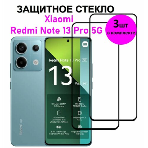 Комплект 3 в 1: Защитное стекло на Xiaomi Redmi Note 13 Pro 5G ( 3 шт ) Ксяоми Редми Нотэ 13 Про 5 Джи Полноэкранное стекло с рамкой Full Glue