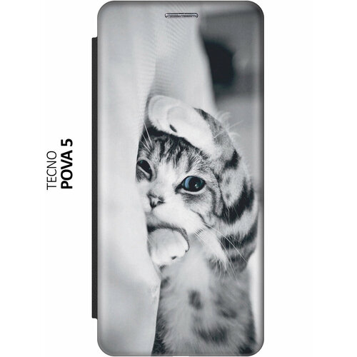 Чехол-книжка Игривый котенок на Tecno Pova 5 / Техно пова 5 черный