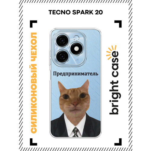 Чехол на Tecno Spark 20 / Текно Спарк 20 с принтом Кот предприниматель, прозрачный