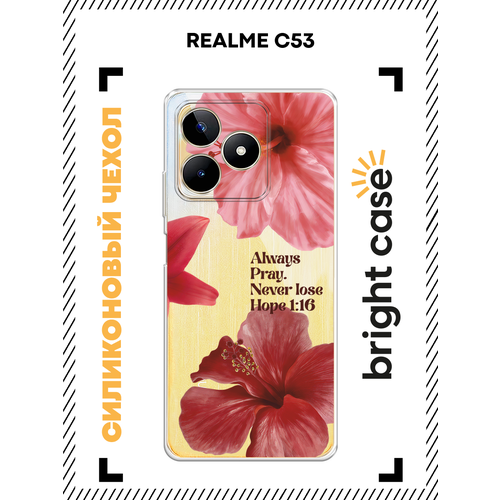 Чехол на Realme C53/C51/Note 50 / Реалми С53/С51/Нот 50 с принтом Красные цветы, прозрачный