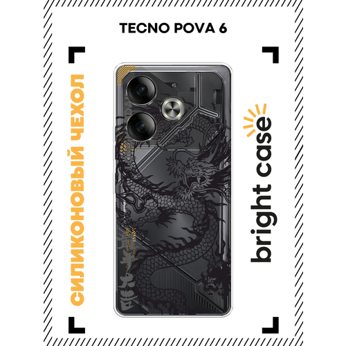 Чехол на Tecno Pova 6 / Техно Пова 6 с принтом Черный дракон, прозрачный