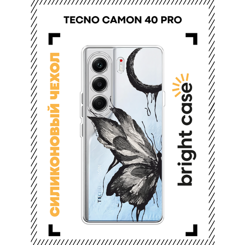 Чехол на Tecno Camon 40 Pro/40 Pro 5G / Текно Камон 40 Про/40 Про 5G с принтом Чернильная бабочка, прозрачный