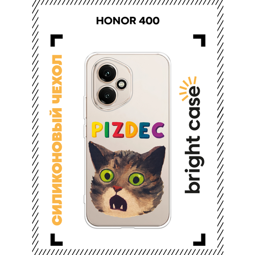 Чехол на Honor 400 / Хонор 400 с принтом Испуганный котик с надписью, прозрачный