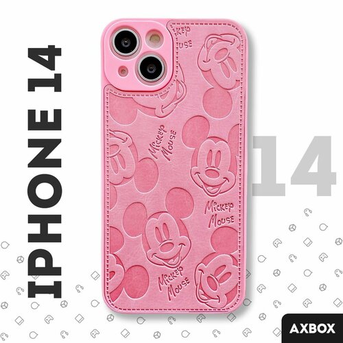 Розовый силиконовый чехол AXBOX на iPhone 12 и 12 Pro Микки Маус, Mickey Mouse, Дисней, кожаный