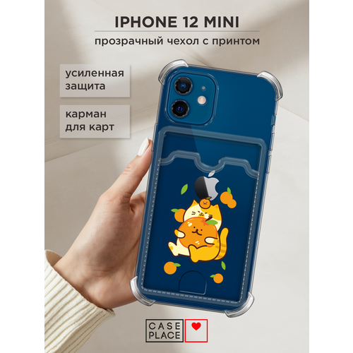 Чехол на Apple iPhone 12 mini (Айфон 12 Мини) с картой и принтом Корейский оранжевый котик