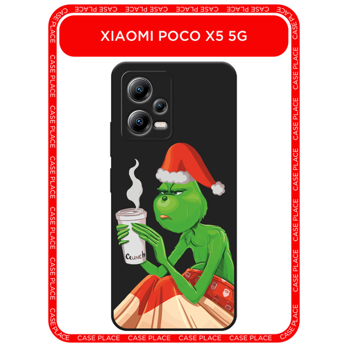 Черный матовый чехол на Xiaomi Poco X5 5G / Сяоми Поко X5 5G с принтом Похититель Рождества отдыхает